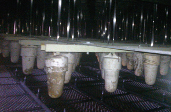陰極線通常采用2205材質。剛性針刺線相比較柔性陰極線,降低了起暈電壓,大幅提高了線電流密度,伏安特性優于柔性線。上下部均設固定點,防止煙氣通過時擺動,滿足高氣速對陰極系統穩定性的特別要求。