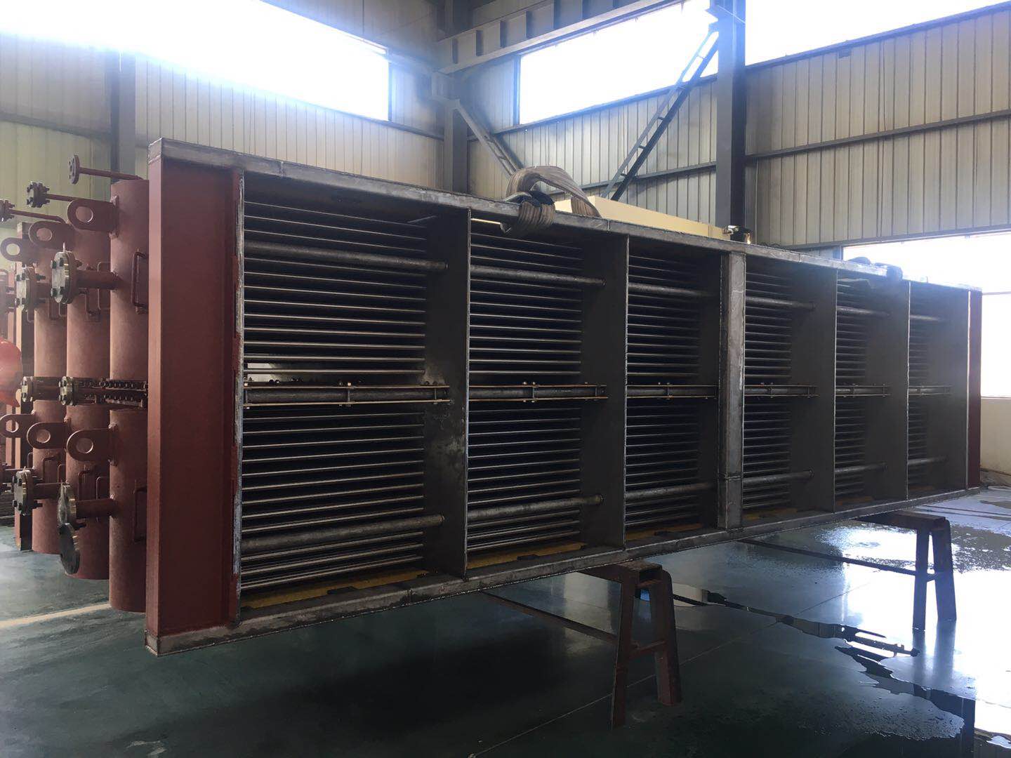 蒸汽-水冷凝器(SWH)是一種管殼式換熱器,殼側(cè)內(nèi)瓷動介質(zhì)為污揮水著判,管側(cè)介質(zhì)為暢環(huán)術(shù),利用污院水器氣加熱循環(huán)水?;厥招心嗨鳉鉄崃?。降低行混水器氣含量。換熱器大小根據(jù)客戶需求以及行泥水著汽物性多數(shù)等實(shí)際情況設(shè)計(jì)。為了方便制造、運(yùn)輸以及安裝,采用模塊化生產(chǎn)模式生產(chǎn)換熱器單元組件,在現(xiàn)場安裝期間,再將組件與組件連接。